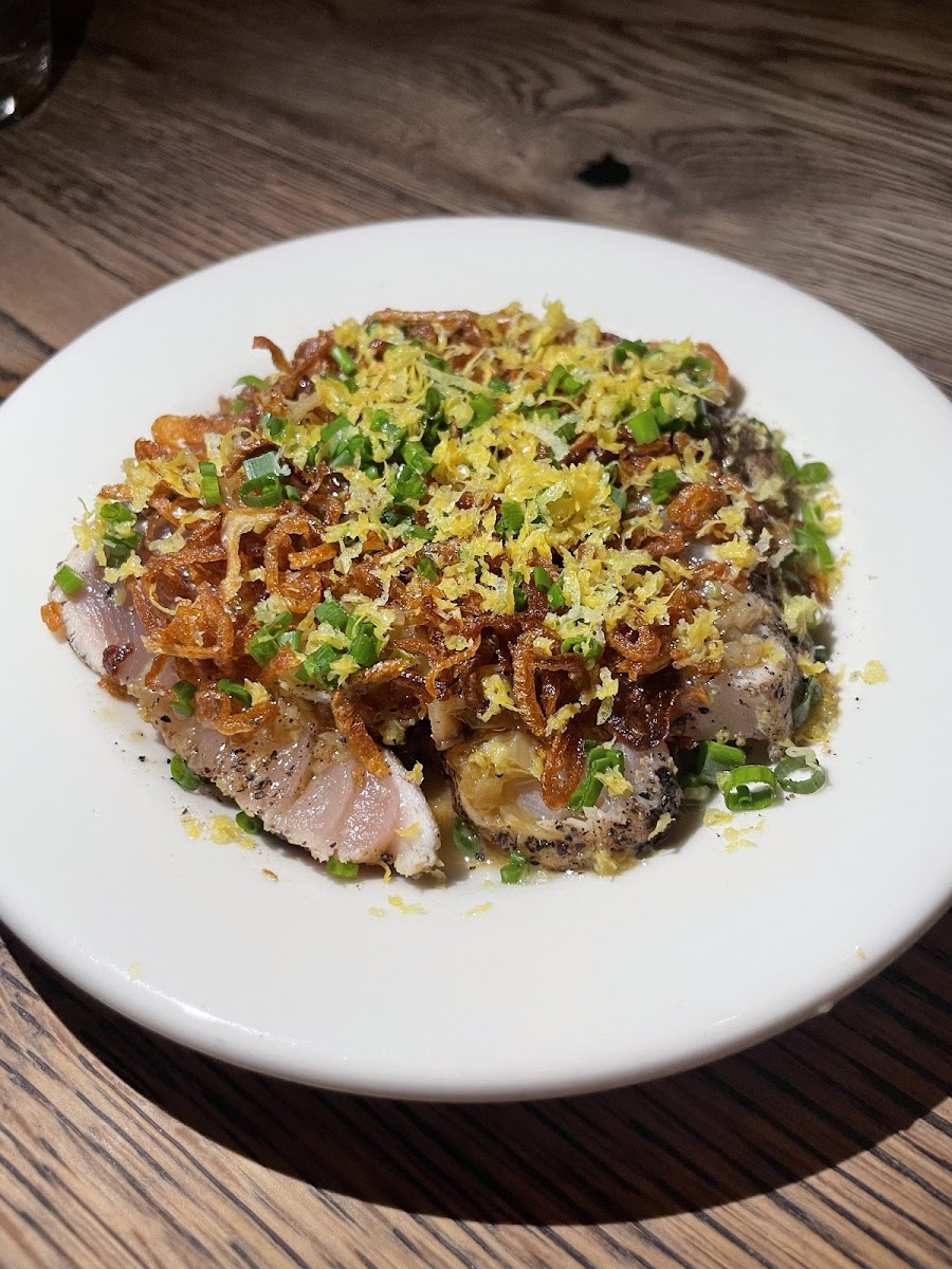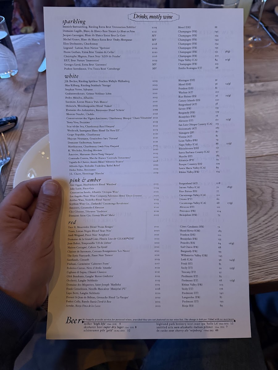 Looking to share? The Baby Albacore with young ginger root relish and shallots is a refreshing treat at $21, while the Pickled White Anchovies capture the essence of Mediterranean flavors at $17. To satisfy your sweet tooth, indulge in the Marinated Apple Pie drizzled with caramel and custard sauce for $14, perfectly finishing your meal with a cozy dessert.
