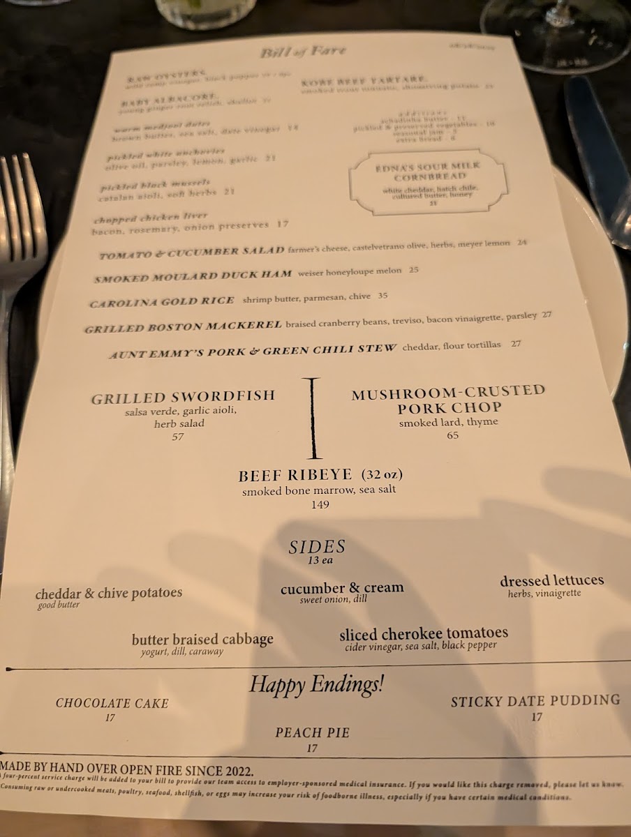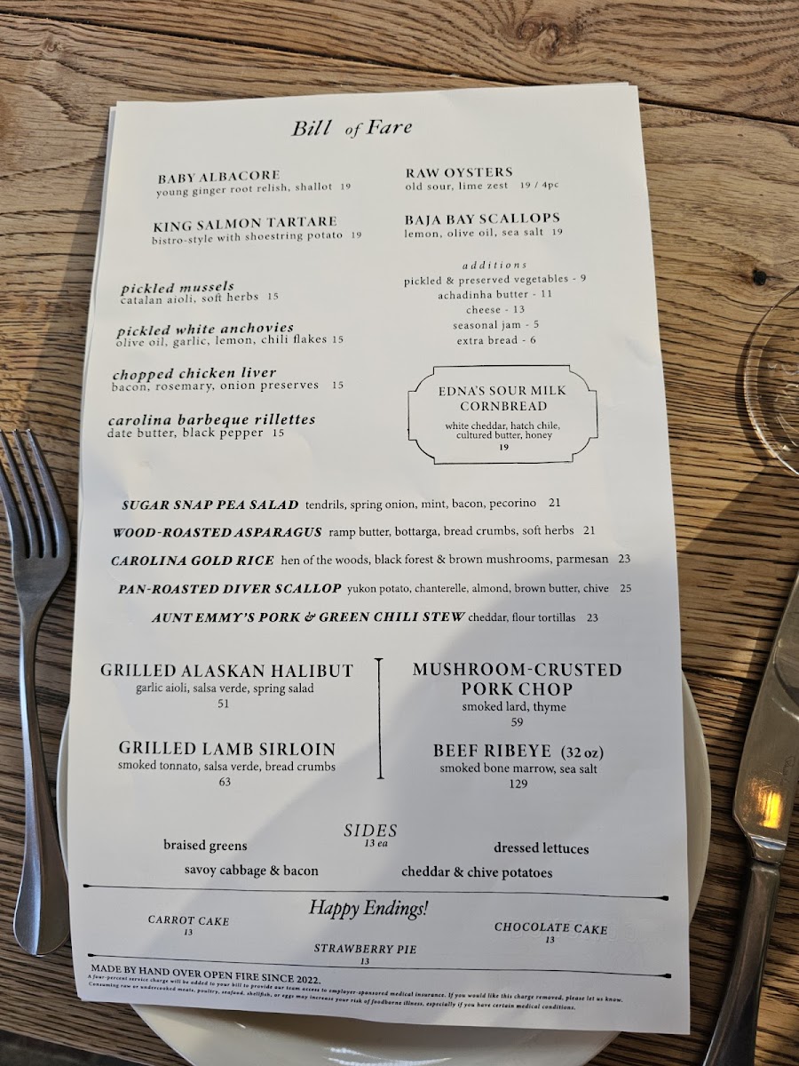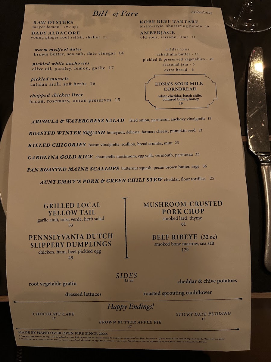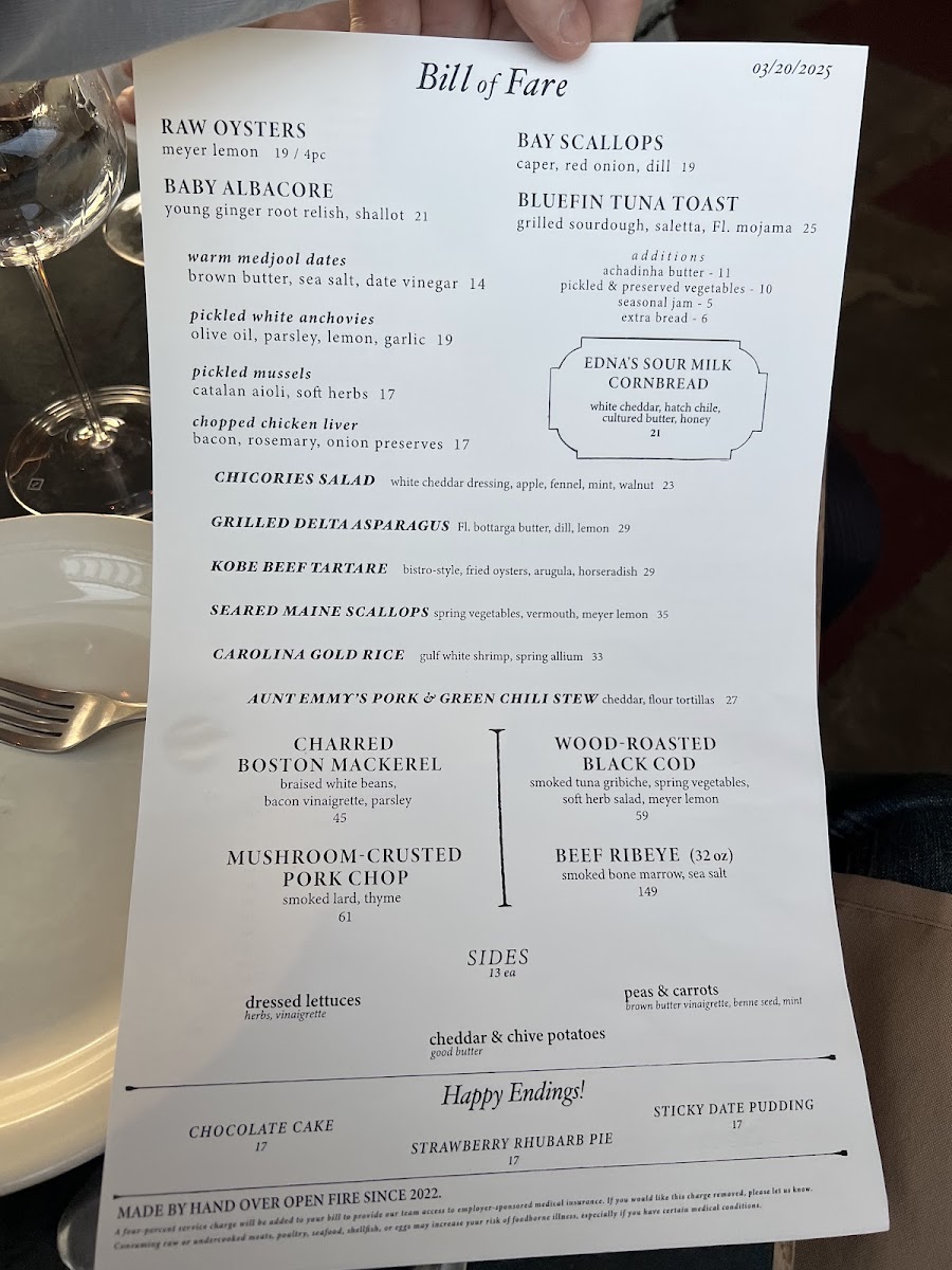 Dunsmoor excels in crafting dishes that marry fresh ingredients with bold flavors. The menu, dubbed the "Bill of Fare," is a testament to culinary artistry, showcasing standout offerings such as the Raw Oysters with old sour and lime, a delectable way to kick off your meal for just $19. The King Salmon Belly served with horseradish cream, smoked roe, and dill is a vibrant dish that dances on your palate for $21. For a more unique option, do not miss the Kobe Beef Tartare, where the richness is beautifully complemented by smoked tonnato and crispy shoestring potatoes, all for $19.